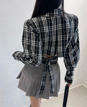 クラシカルなチェック柄に、バックリボンデザインで抜け感をプラスしたショートシャツ。