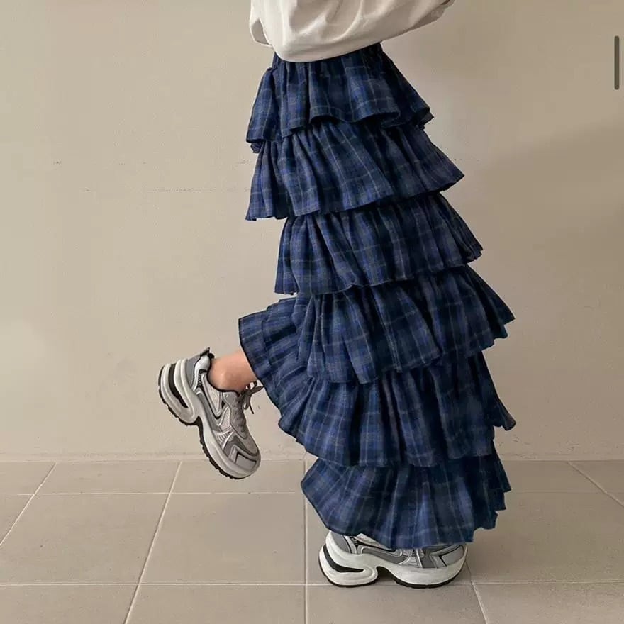 チェックティアードフリルロングスカート